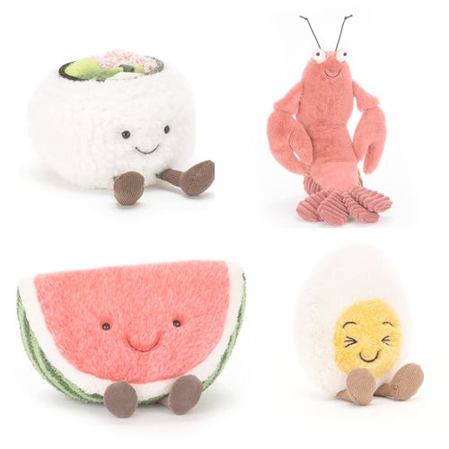 Jellycat laver også kejtet og skæve bamser, der ikke er til at stå for. Der er madbamserne, dovendyret, kuglefisken og meget mere. Alle bamserne kan findes i kategorien ovenfor 👆